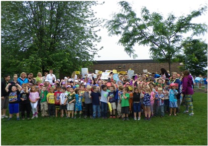 The Kapoors (seen in action below) who taught SSEHV at this school as volunteers, introduced this Walk to the school community several years ago. Teacher Phillips is seen below leading her students in the Walk. After the Walk the whole student body gathered to hold up their slogans and pledges to practice a value.