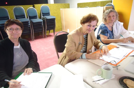 The three judges were (left to right) Justine Janus-Miquel , Gee Kucy and Christina Lukomsky(Ananda) from Edmonton. Artists with many years of experience, they were pleased with the entries received and confessed having a difficult time choosing the winners.