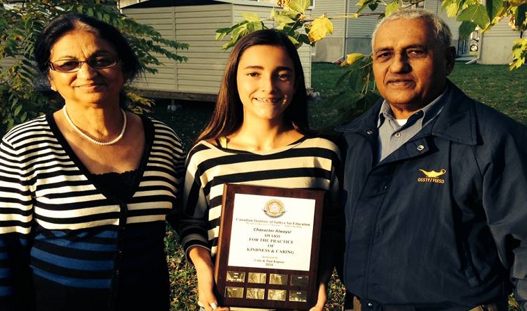 Sydney Legros of Eammer’s Corners Public School was this year’s award winner for demonstrating Kindness and Values. The award was presented by Usha and Mohinder Paul Kapoor, dedicated CISSE volunteers who taught SSEHV at the school for 6 years.